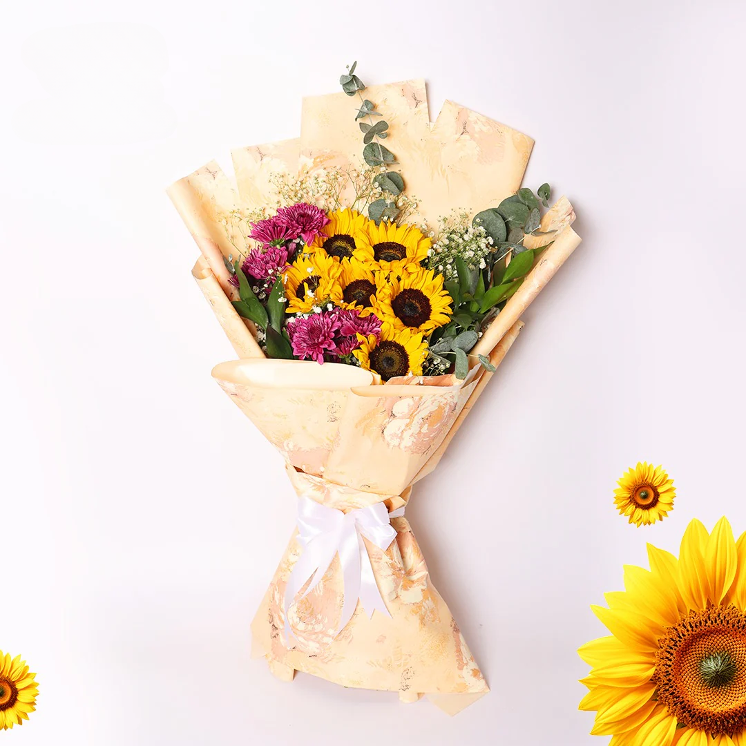 Sunflower Delight: Summer Serenade (Sunflower & Purple Bloom) Bask in the warmth of summer with our Sunflower Delight: Summer Serenade arrangement. This vibrant display features cheerful...